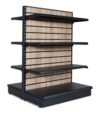Our 1.6m high slatwall backed low gondola shelving with a 300mm base shelf and choice of 250mm upper shelves each side is designed to offer a practical balance of increased display height and compact shelf depth, making it ideal for double-sided retail merchandising.
