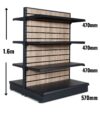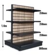 Wooden Slat Backed Low Gondola Shelving