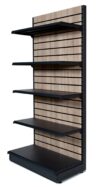 Slatwall Backed Wall Shelving, 2.1m High with 570mm Base Shelf and Choice of 470mm Upper Shelves | Retail Display Shelving